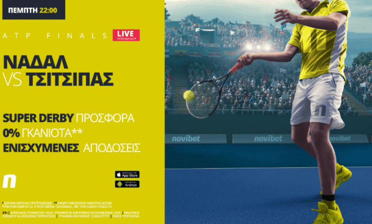 Ο μεγάλος αγώνας του Στέφανου Τσιτσιπά προσφέρεται από τη Novibet σε Live Streaming*, με 0% γκανιότα**, κορυφαία ειδικά στοιχήματα και αγορές σε ενισχυμένες αποδόσεις.