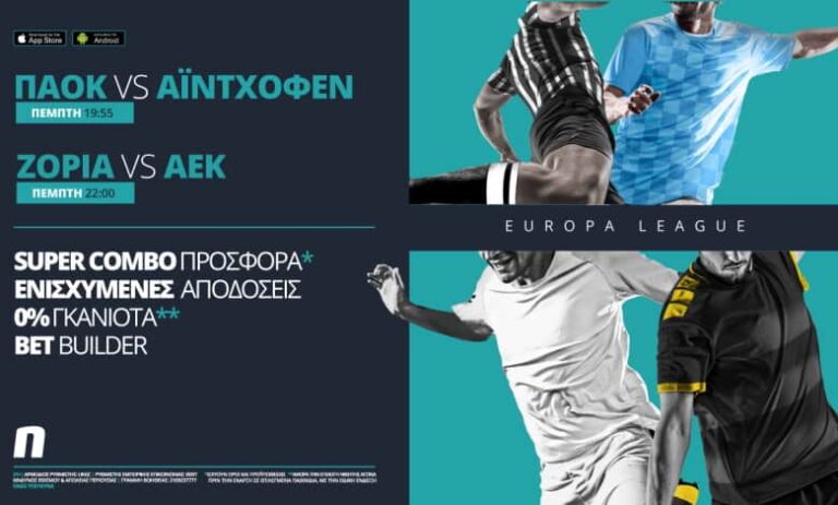 Οι αναμετρήσεις των ελληνικών ομάδων παίζουν με συναρπαστική προσφορά, κορυφαία ειδικά στοιχήματα και ενισχυμένες αποδόσεις. Στη Novibet γράφεις τη δική σου ιστορία και στο Γιουρόπα Λιγκ!