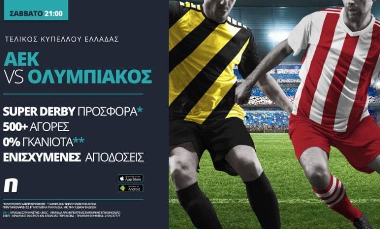 Το ΑΕΚ – Ολυμπιακός παίζει με προσφορά*, ΑΕΚ – Ολυμπιακός με Super Derby προσφορά* και πλούσια ειδικά στοιχήματα (Novi Specials).
