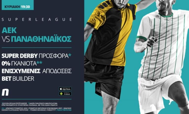 Το αθηναϊκό ντέρμπι παίζει με σούπερ προσφορά* για όλα τα μέλη, κορυφαία ειδικά στοιχήματα ομάδων και παικτών και αγορές σε ενισχυμένες αποδόσεις.