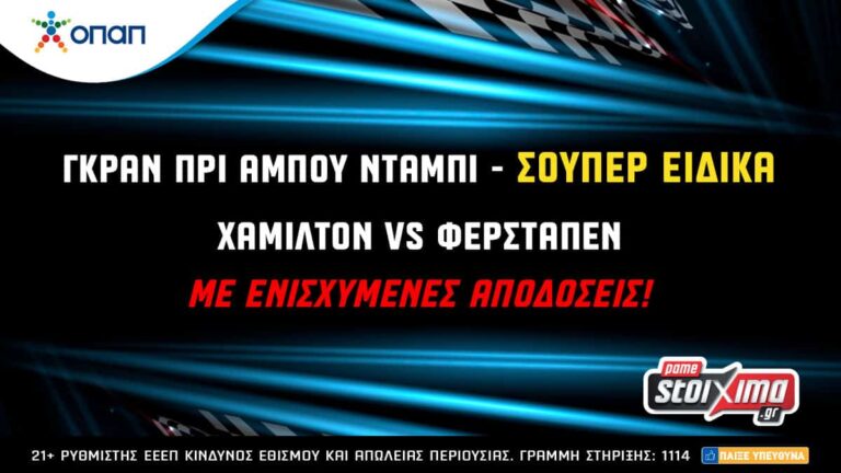 Ακόμα, με μεγάλο ενδιαφέρον αναμένεται η μονομαχία του Χάμιλτον με τον Φερστάπεν για τον τίτλο στη Φόρμουλα 1 και στο Pamestoixima.gr είναι διαθέσιμα σούπερ ειδικά στοιχήματα σε ενισχυμένες αποδόσεις!