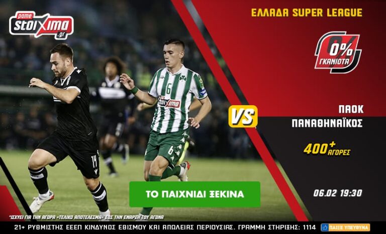 Ντέρμπι έχουμε και στη Super League, με τον ΠΑΟΚ να υποδέχεται τον Παναθηναϊκό. Τη «μάχη» της Θεσσαλονίκης τη ζεις με 0% γκανιότα** και περισσότερες από 400 ειδικές αγορές στις αποδόσεις που πάντα ήθελες στο Pamestoixima.gr. Ακόμα, με 0% γκανιότα** είναι διαθέσιμος και ο τελικός του Copa Africa ανάμεσα στη Σενεγάλη και την Αίγυπτο! Ποια εκ των δύο θα σηκώσει τελικά το τρόπαιο;