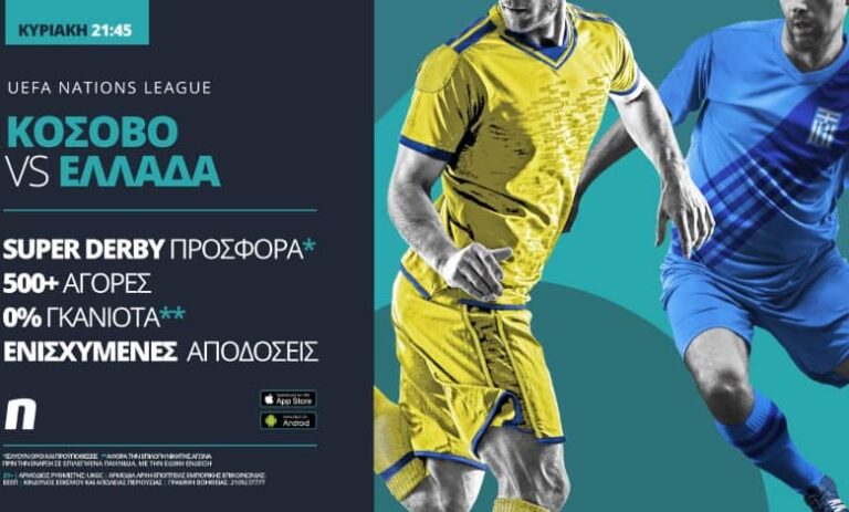 Το κρίσιμο ματς της Ελλάδας παίζει με συναρπαστική προσφορά*, εκατοντάδες αγορές, ειδικά στοιχήματα, partial Cash Out* και Κόσοβο – Ελλάδα με σούπερ προσφορά*.