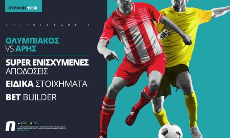 Ολυμπιακός – Άρης: 1: 1,56 Χ: 4,10 2: 6,00
