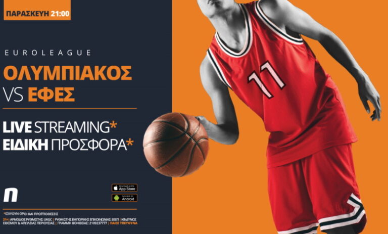 Το Ολυμπιακός – Εφές παίζει σε Live Streaming*, με σούπερ προσφορά*, πλήθος αγορών, ενισχυμένες αποδόσεις και ειδικά στοιχήματα παικτών και ομάδων. Στη Novibet γράφεις ιστορία και στην Ευρωλίγκα!