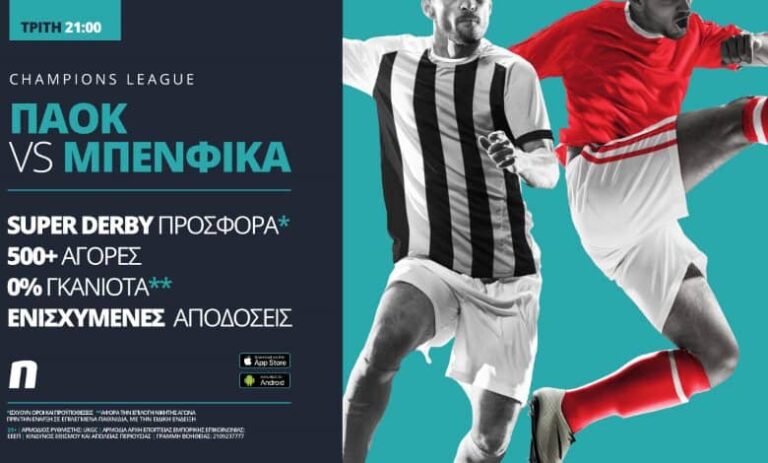 Το αποψινό σπουδαίο ματς παίζει με Super Derby προσφορά*, 500+ αγορές, κορυφαία ειδικά στοιχήματα, 0% γκανιότα** & ενισχυμένες αποδόσεις.
