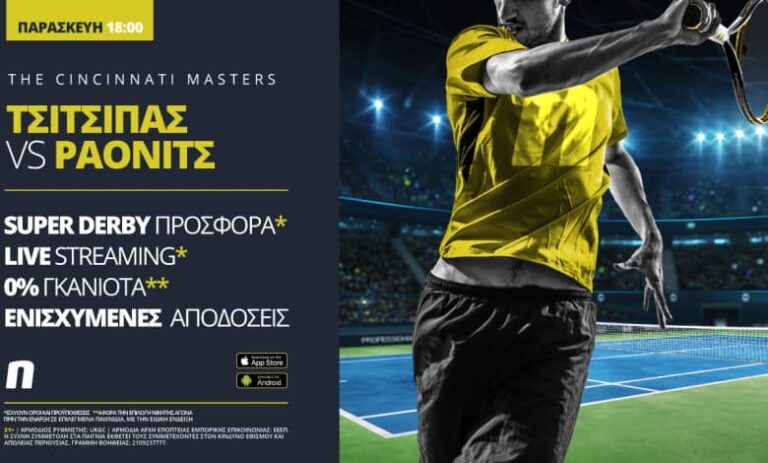 Ο ημιτελικός του Στέφανου Τσιτσιπά παίζει με σούπερ προσφορά*, σε Live Streaming*, με ενισχυμένες αποδόσεις και κορυφαία ειδικά στοιχήματα.