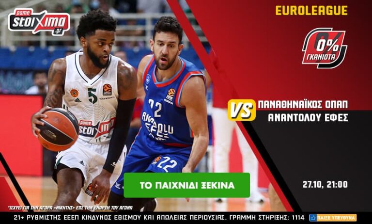 Στο πρόγραμμα της Τετάρτης (27/10), λοιπόν, ξεχωρίζουν οι σημαντικές αναμετρήσεις στο πλαίσιο της EuroLeague. Ο Παναθηναϊκός ΟΠΑΠ υποδέχεται την Εφές και στο ανανεωμένο Pamestoixima.gr τον σπουδαίο αγώνα των «πράσινων» τον ζεις παραπάνω με 0% γκανιότα**, ενισχυμένες αποδόσεις αλλά και μια πλούσια λίστα με ειδικά στοιχήματα παικτών και ομάδων! Κοινώς, ακόμα περισσότερες ευκαιρίες για κέρδη.