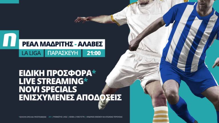 Η ισπανική La Liga παίζει σε Live Streaming*, με καθημερινές προσφορές*, ειδικά στοιχήματα και Ρεάλ – Αλαβές με ειδική προσφορά*.