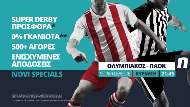 Ακόμα ένα μεγάλο ματς συνοδεύεται από σούπερ προσφορά*. Αξίζει, επίσης, να σημειωθεί πως ούτε από αυτό το ντέρμπι δε λείπουν τα Novi Specials και οι ενισχυμένες αποδόσεις.