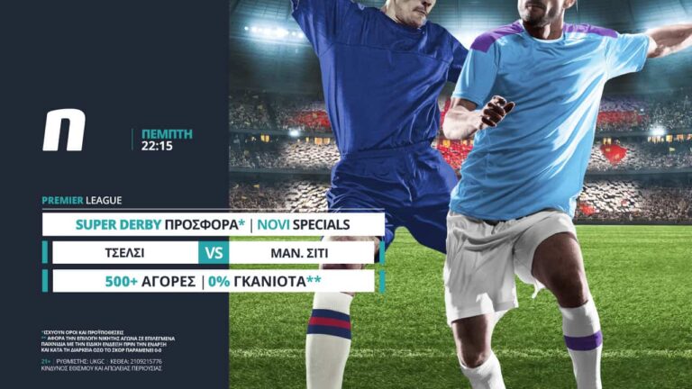 Το Τσέλσι – Σίτι παίζει με πλούσια ειδικά στοιχήματα, Super Derby προσφορά*, κορυφαίες αποδόσεις και εκατοντάδες αγορές. Στη Novibet το στοίχημά σου αξίζει περισσότερο!